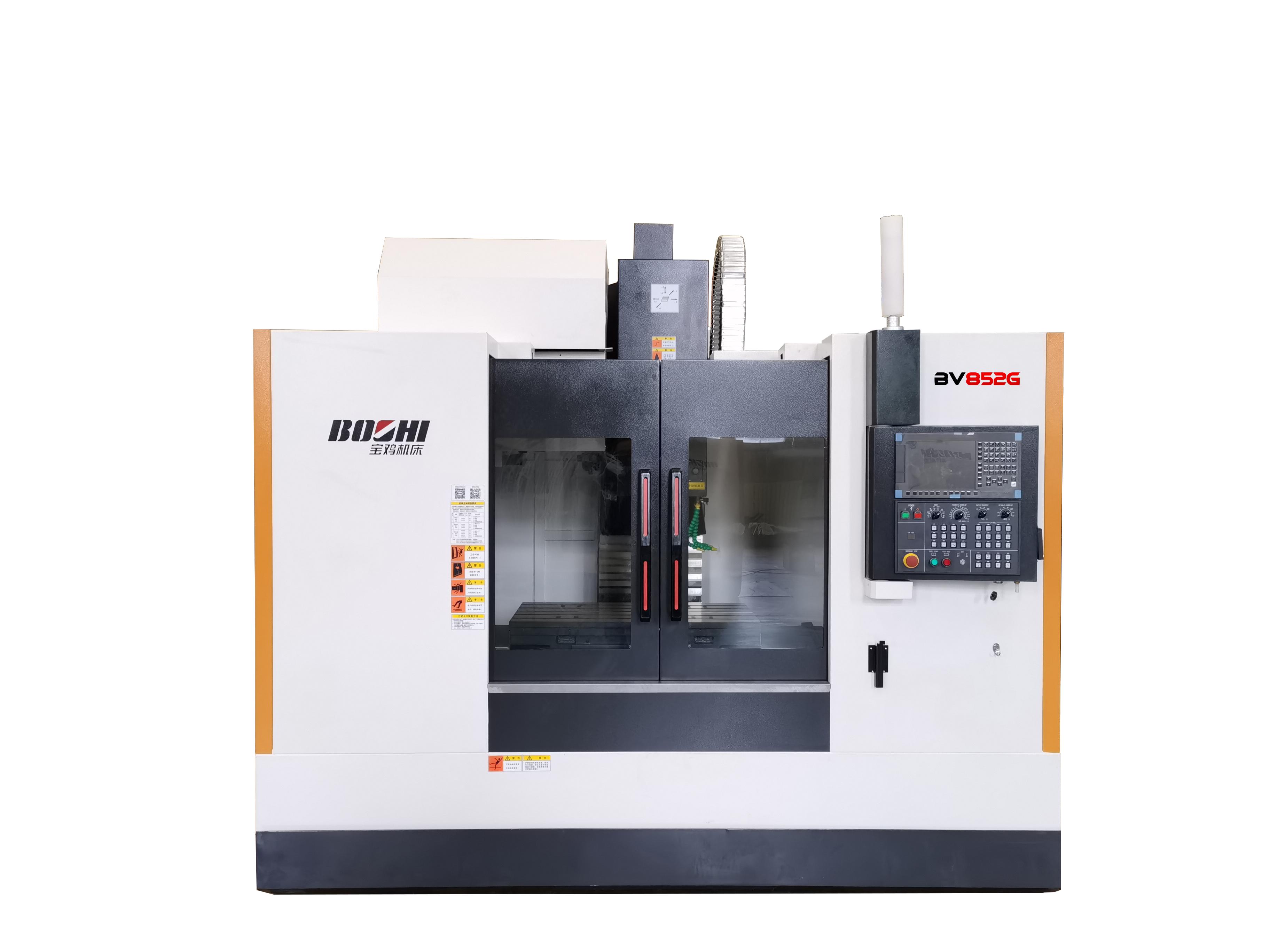 BV852G高精度立式加工中心,采用西門子840D數(shù)控系統(tǒng),三軸大跨距滾柱線軌,圓盤刀庫,15000r/min高速智能電主軸,全閉環(huán)控制;整機搭配有智能熱誤差補償功能,可自動補償因工作溫度引起的機床精度變化,具有高速、高精特點,定位精度可達(dá)0.002,重復(fù)定位精度0.0015,適用于新能源汽車、5G產(chǎn)業(yè)等行業(yè)高精度零件的高速高精加工。